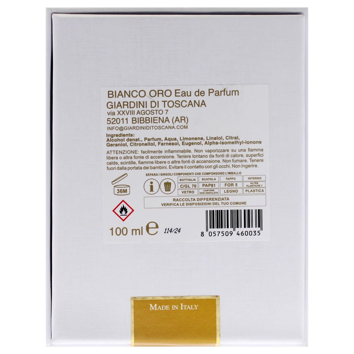 Parfum Unisexe Giardini di Toscana BIANCO ORO Bianco Oro EDP 100 ml